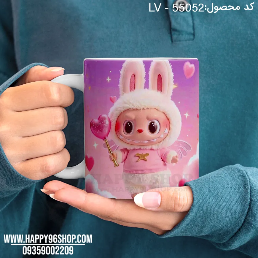 لیوان با عکس لبوبو. چاپ و طراحی لیوان‌ها قابلیت اجرای ۲ الی ۳ عکس متفاوت و دلخواه شما را دارند. شرح کامل محصول در ادامه ذکر شده است: