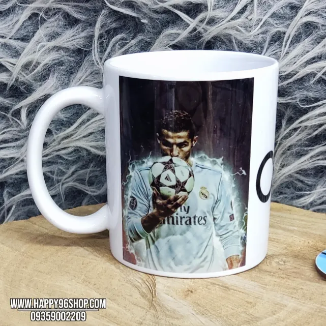 لیوان با عکس Cristiano Ronaldo. چاپ و طراحی لیوانها قابلیت اجرای ۲ الی ۳ عکس متفاوت و دلخواه شما را دارند. شرح کامل محصول در ادامه ذکر شده است: