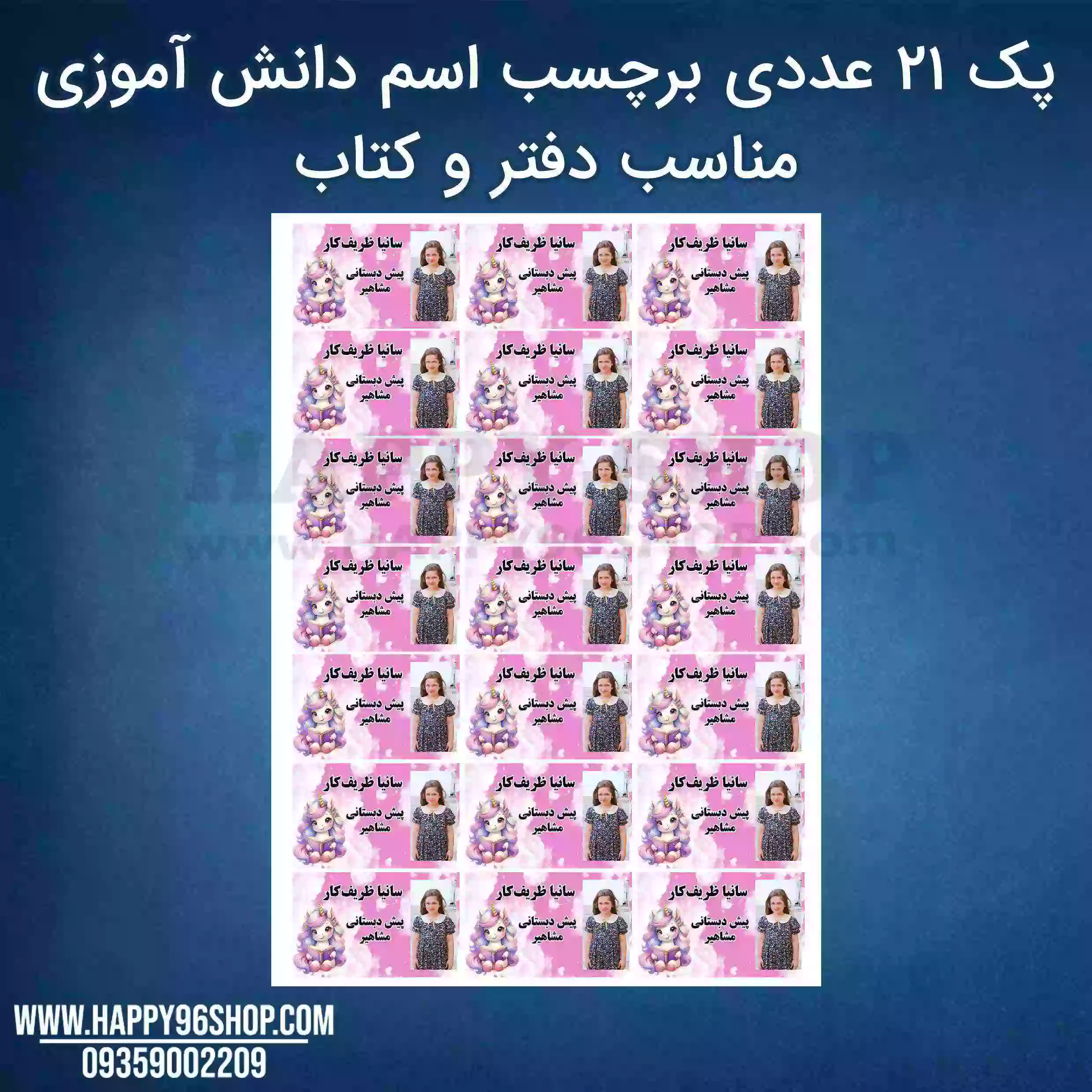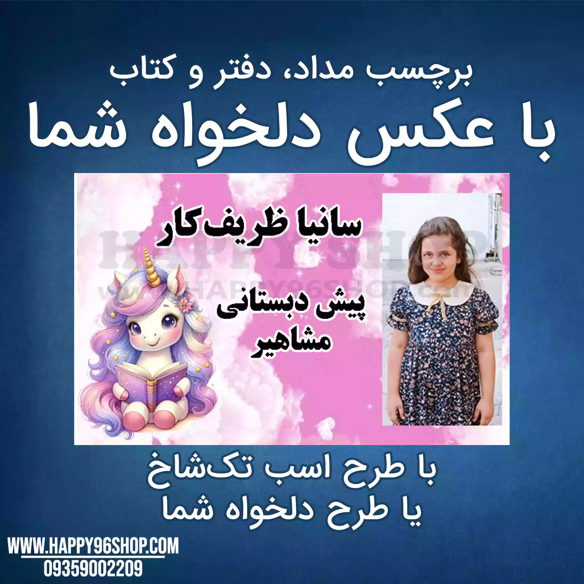 چاپ برچسب دانش آموز با عکس و طرح دلخواه شما، قابل اجرا روی برچسب دفتر، برچسب کتاب، برچسب مداد و خودکار و... شرح کامل محصول در ادامه ذکر شده: