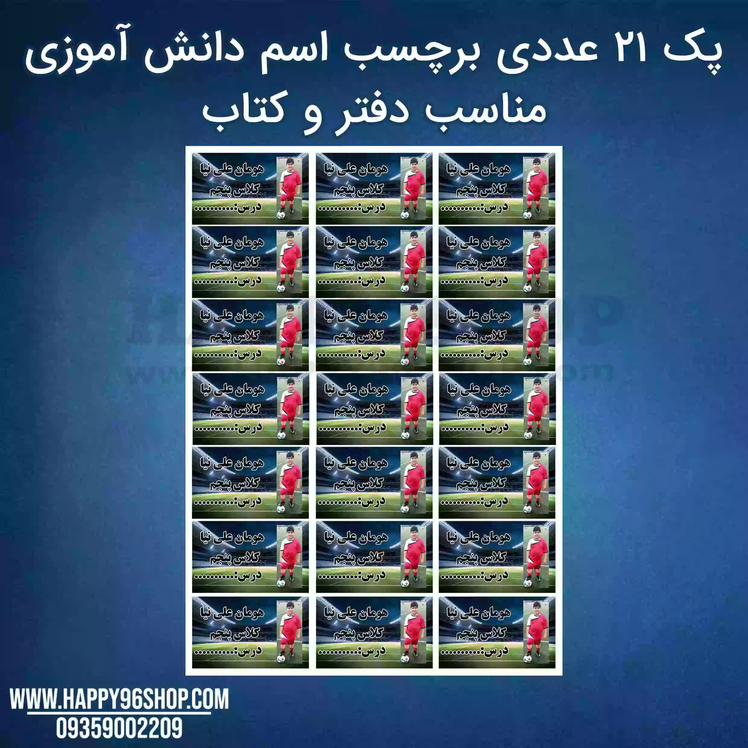 برچسب کتاب با اسم دانش آموز طرح فوتبالی پسرانه