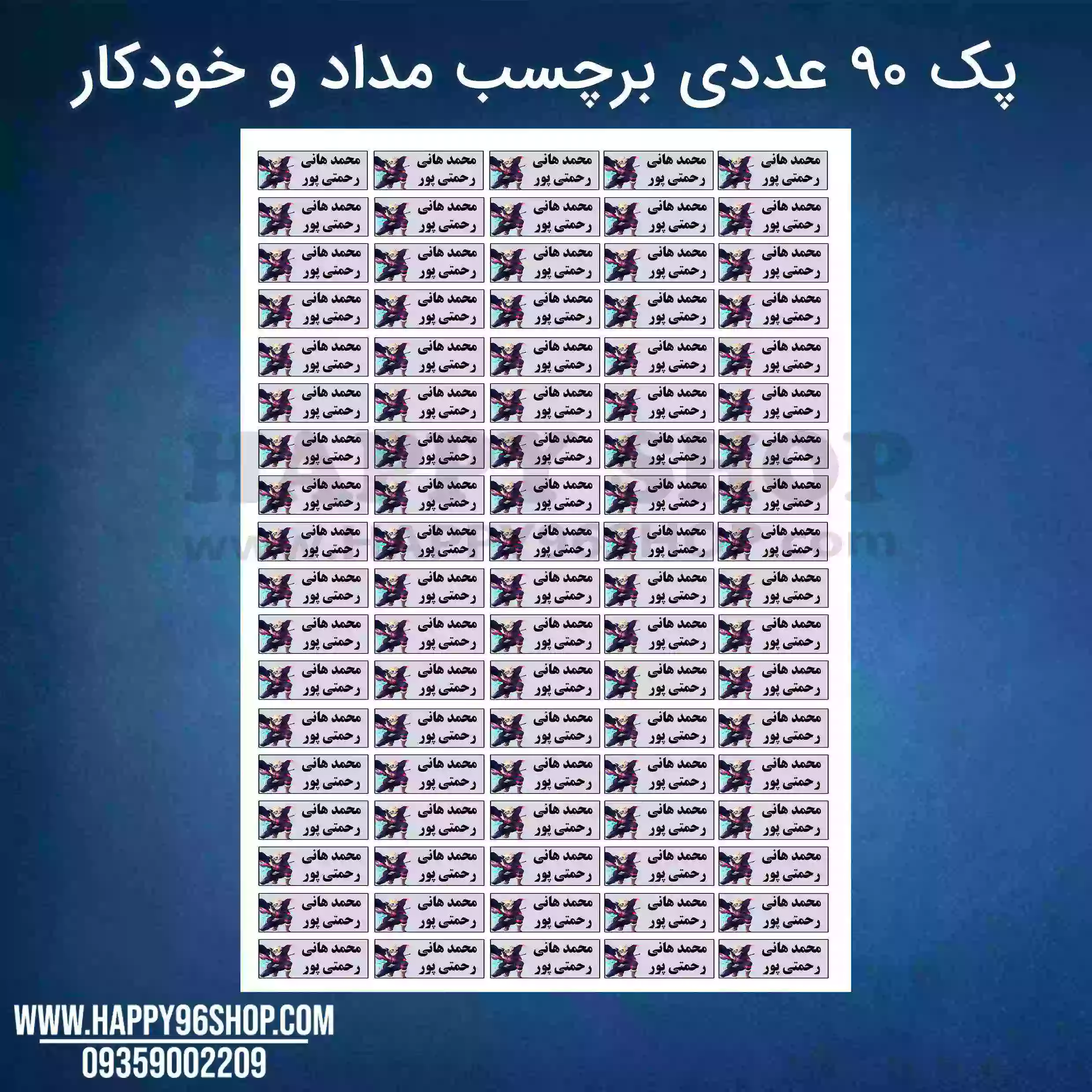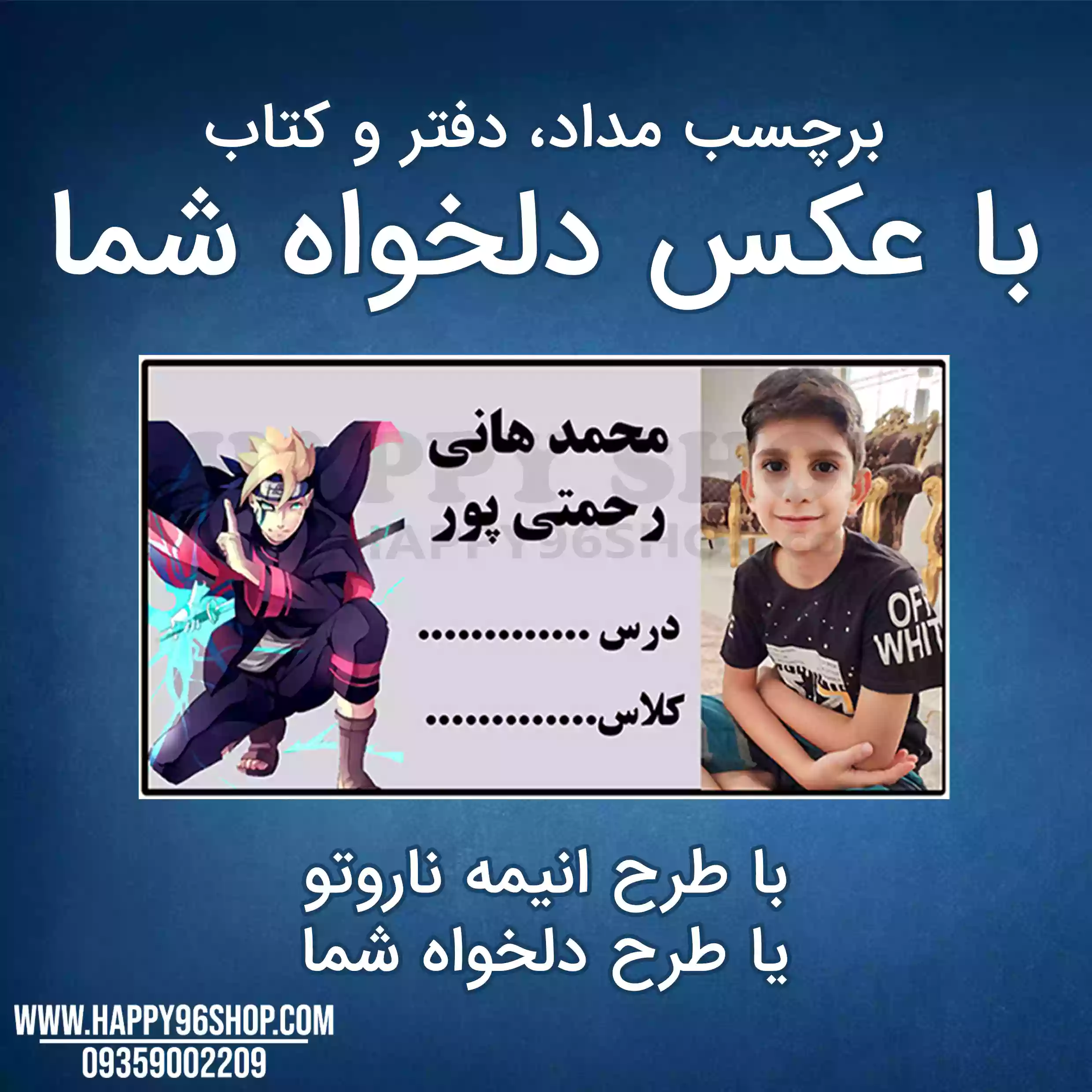برچسب کتاب انیمه ناروتو با اسم و عکس دانش آموز